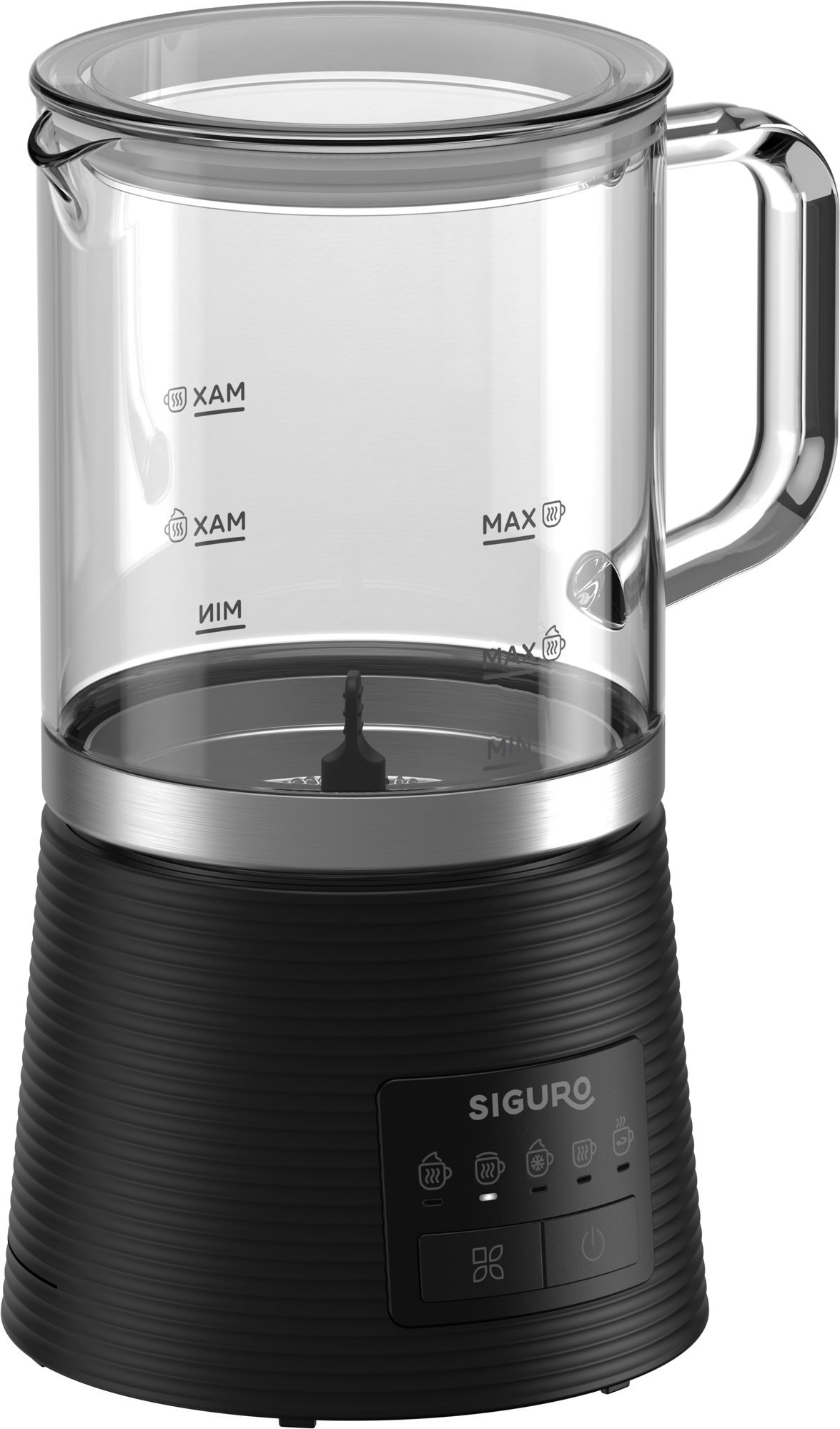 Napeňovač mlieka – na napenenie teplého aj studeného mlieka, odnímateľná sklenená nádoba, 5 programov, objem 250 ml na šľahanie a 400 ml na ohrev mlieka, ohrev na teplotu cca 65 °C, príkon 600 W, automatické vypnutie a tepelná poistka, protišmyková základňa, nádobu je možné umývať v umývačke riadu, dĺžka kábla 75 cm, 3 roky záruka Napeňovač mlieka Siguro Deluxe Foam G420BSpeňovač mlieka Siguro Deluxe Foam G420B prináša jednoduchý spôsob, ako si v pohodlí domova vychutnať cappuccino, latté alebo horúcu čokoládu s dokonale nadých