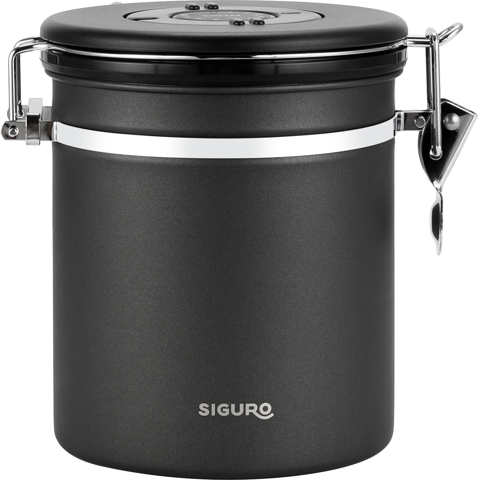 Dóza – na až 500 g kávových zŕn, chráni kávu pred UV žiarením, vlhkosťou a oxidáciou, kvalitná nehrdzavejúca oceľ, ABS viečko so silikónovým tesnením a klipovým zatváraním (BPA free), jednocestný ventil, číselník pre nastavenie dátumu spotreby, vo vnútri brúsená oceľ, zvonku matná čierna povrchová úprava Dóza na kávu Siguro Elite BrewS dózou Siguro Elite Brew budete mať kávové zrná vždy v tej najlepšej kondícii. Počas skladovania pôsobí totiž na kávu množstvo faktorov (svetlo, vlhkosť, pachy a pod. )