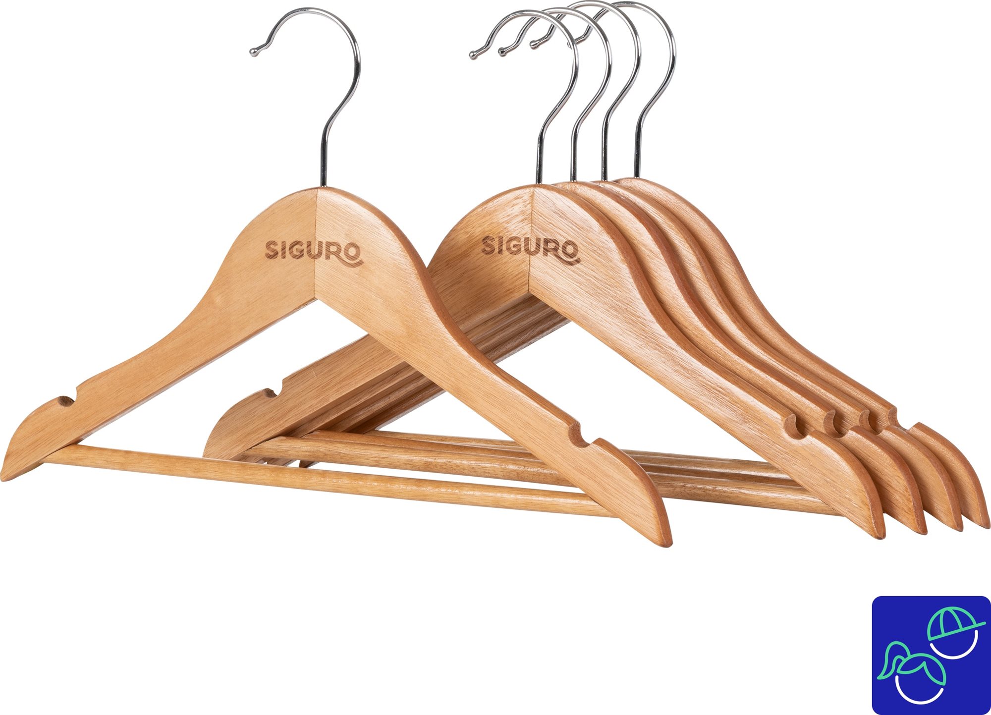 Vešiak – z certifikovaného eukalyptového dreva, detská veľkosť, nosnosť 5kg, otočný kovový háčik, tyč na nohavice, rozmery 195×12×305mm, hmotnosť 80g Vešiaky Siguro Essentials KidsVybavte detskú šatníkovú skriňu vešiakmi Siguro Essentials Kids z certifikovaného eukalyptového dreva, ktoré sa vyznačujú predovšetkým optimálnou veľkosťou na detské oble