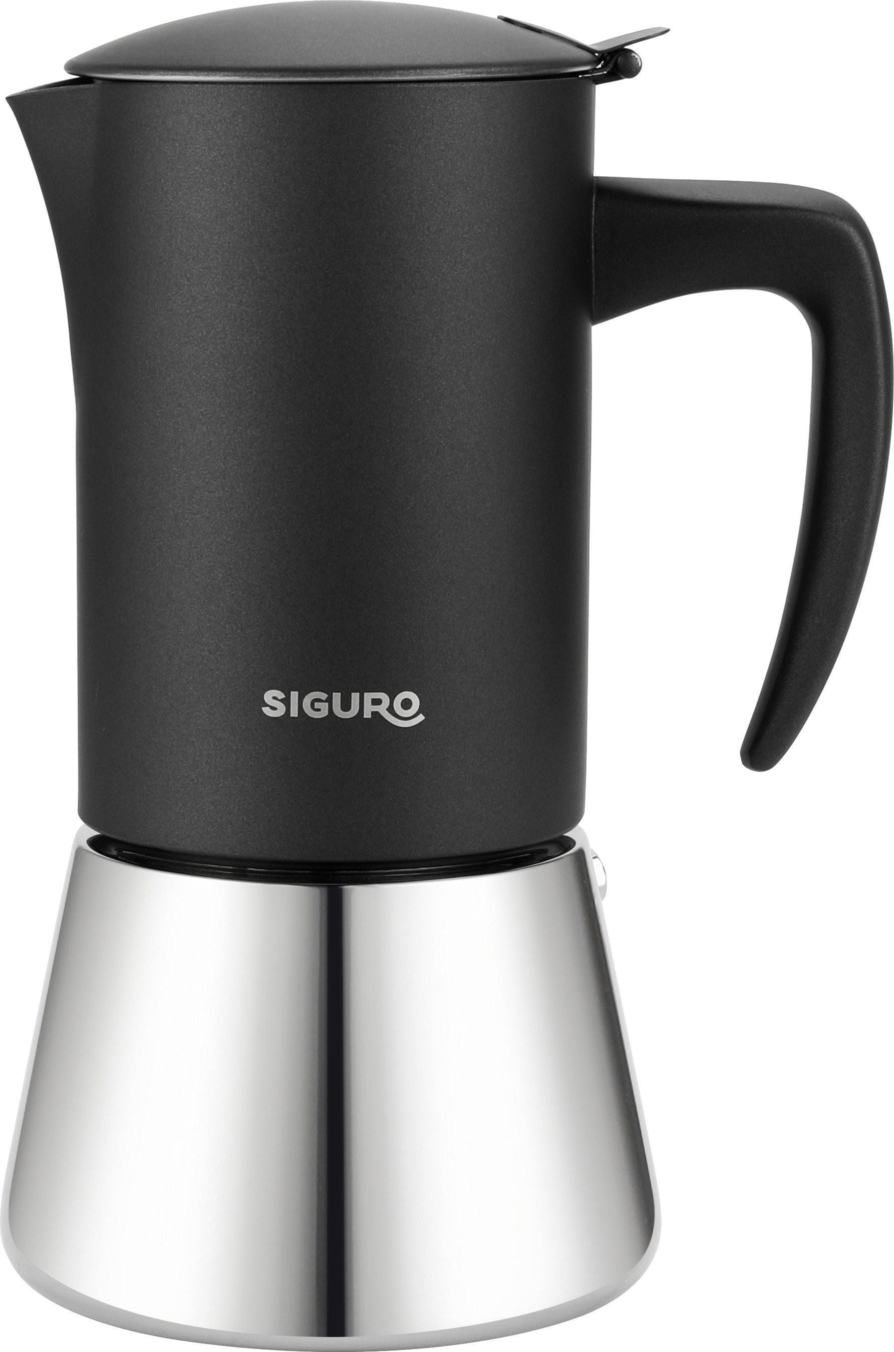 Moka kávovar – je možné použiť na všetkých typoch varných dosiek, vrátane indukcie, kvalitná nehrdzavejúca oceľ, tepelne izolovaná rukoväť, vo vnútri brúsená oceľ, zvonku matná čierna povrchová úprava Moka kanvica Siguro Elite BrewS elegantnou moka kanvicou Siguro Elite Brew si pripravíte až 6 šálok silného espressa naraz. Výhodou tejto moka kanviče je predovšetkým jej použiteľnosť na všetkých typo