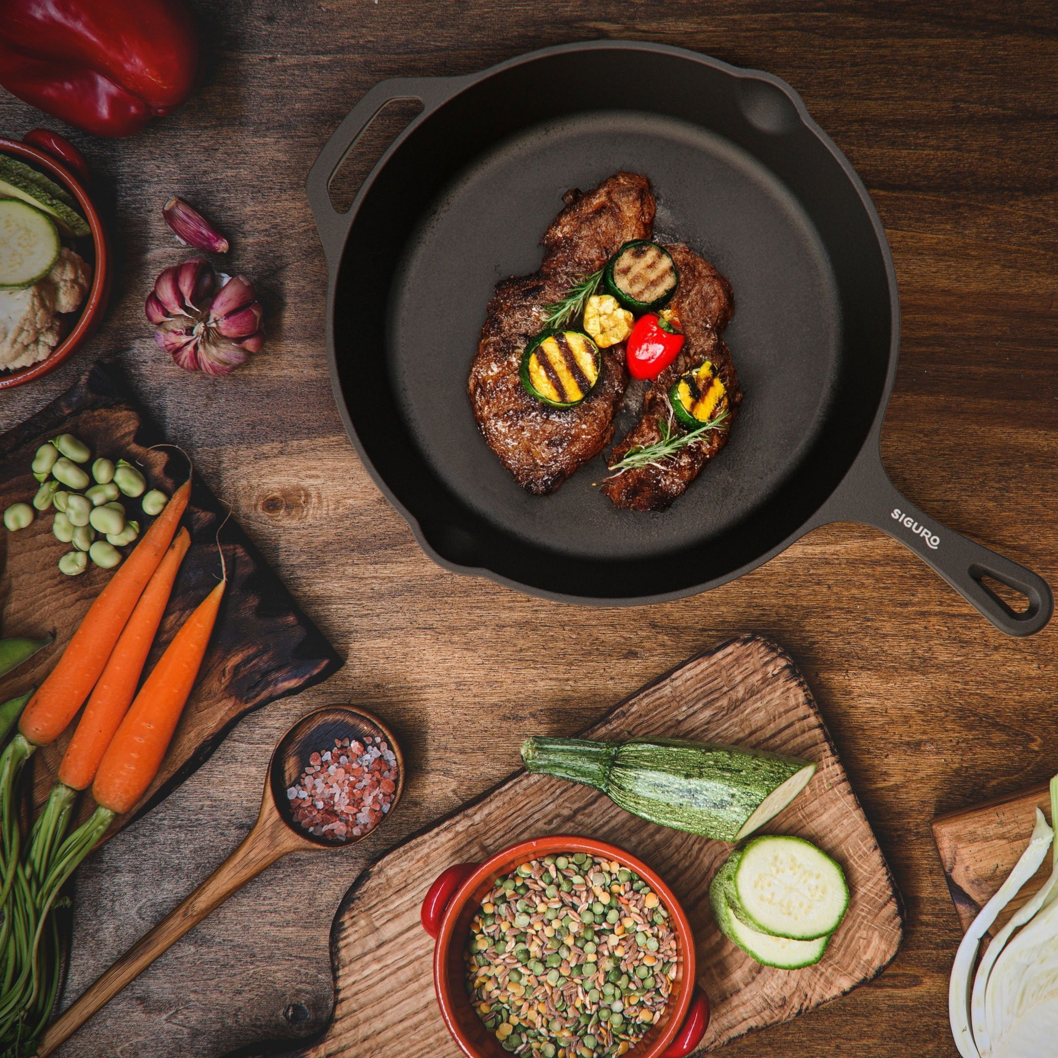 Panvica – priemer 30 cm, liatinová, vhodná na všetky typy sporákov, do rúry, na gril aj otvorený oheň, vynikajúca tepelná vodivosť, bez povrchovej úpravy, neobsahuje toxické látky, možno používať aj kovové náčinie, pred prvým použitím nutné vypáliť, hmotnosť 3,05 kg Panvica Siguro Ready2CookLiatinová panvica Siguro Ready2Cook s priemerom 30 cm sa vyznačuje extrémnou odolnosťou, dlhou životnosťou či vynikajúcou tepelnou vodivosťou a je perfektnou voľbou nielen na