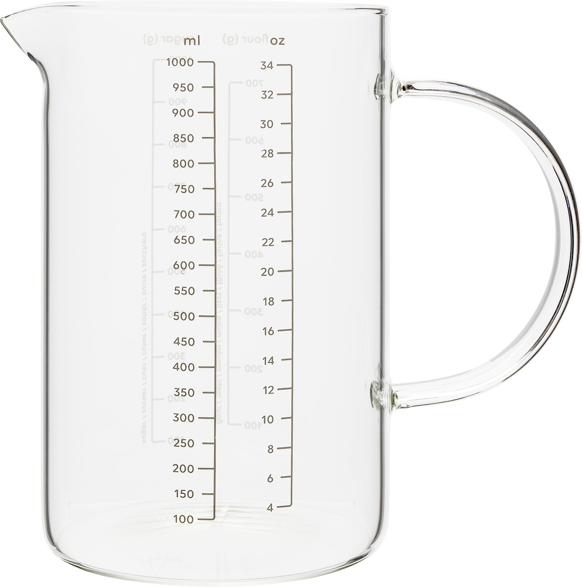 Kuchynská odmerka – z borosilikátového skla, stupnice na múku, cukor aj tekutiny, sklo neabsorbuje pachy ani farby, vhodné do rúry aj mikrovlnnej rúry, možno umývať v umývačke riadu, objem 1000 l, hrúbka steny a dna…