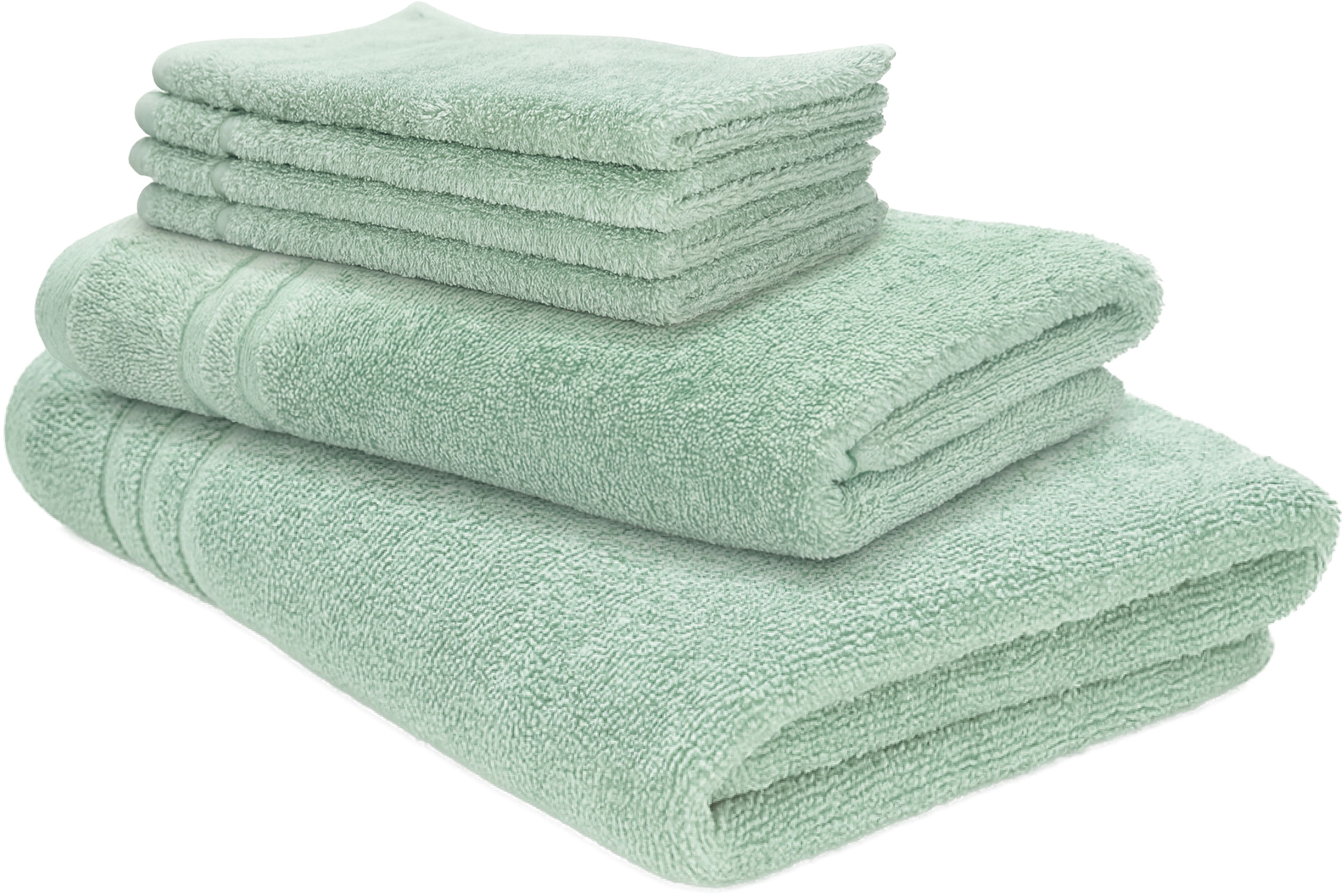 Sada uterákov – obsahuje 1× osušku (70 × 140 cm), 1× uterák (50 × 100 cm) a 4× malý uterák (30 × 50 cm), z tureckej bavlny, 100% prírodný materiál, vysoká nasiakavosť, certifikácia OEKO-TEX® Standard 100, pranie na 60 °C (bez aviváže), vhodné do sušičky, gramáž 500 g/m², pútka na zavesenie, farba zelená Súprava uterákov a osušky Siguro Comfy TouchTáto súprava obsahuje jednu osušku (70 × 140 cm), jeden uterák (50 × 100 cm), štyri menšie uteráky s rozmermi 30 × 50 cm a ponúka tak praktické využitie na