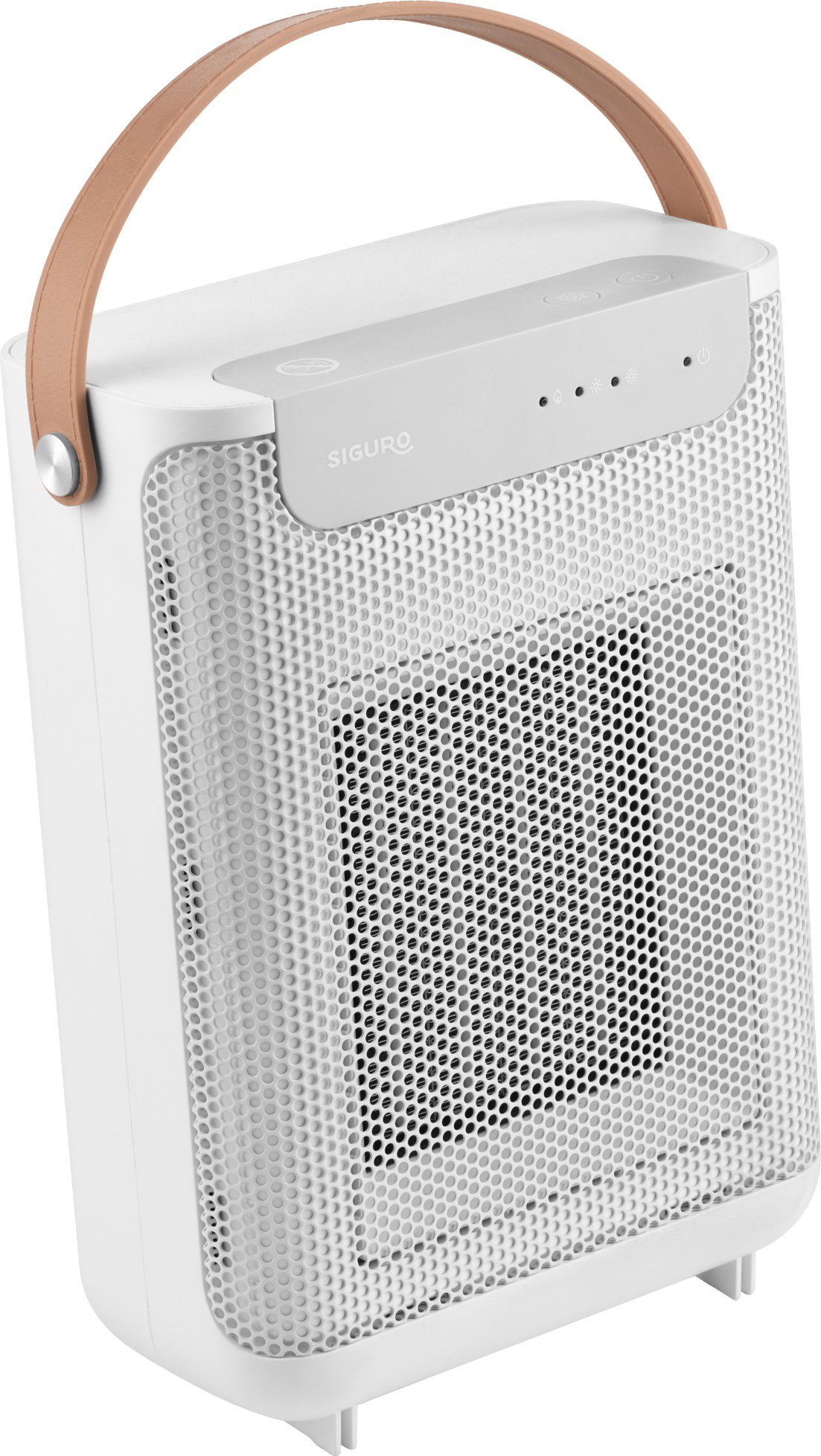 Teplovzdušný ventilátor – elektrický, PTC keramický vykurovací prvok, pre miestnosti do 10 – 15 m², príkon max. 1 400 W, 2 stupne výkonu a eko režim, dotykové ovládanie, automatické vypnutie pri prevrhnutí, tepelná poistka, hlučnosť 52 dB, dĺžka kábla 2 m, rozmery 20,2 × 11 × 27,4 cm, hmotnosť 1,8 kg, 3 roky záruka Teplovzdušný ventilátor Siguro Warmee G250WElegantný a ľahko prenosný teplovzdušný ventilátor Siguro Warmee G250W je navrhnutý pre rýchle, tiché a energeticky efektívne vykurovanie menších miestností.