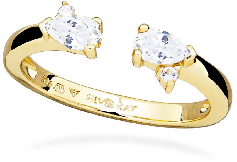 Prsteň – dámsky, materiál striebro a žlté zlato, pozlátený, hmotnosť 2,2 g, do prsteňa sú zasadené zirkóny, 4 kamene, drahokam v tvare kvapky drahokam v tvare markízy, briliantový brus drahokamu, obvod 56 mm, vnútorný priemer 17,8 mm Prsteň SILVER CAT sa stane dôležitou súčasťou šperkovnice všetkých žien. Materiálom, z ktorého je tento šperk vyrobený, je striebro a žlté zlato. Striebro vytvára veľmi striedmy efekt, a preto bude vh