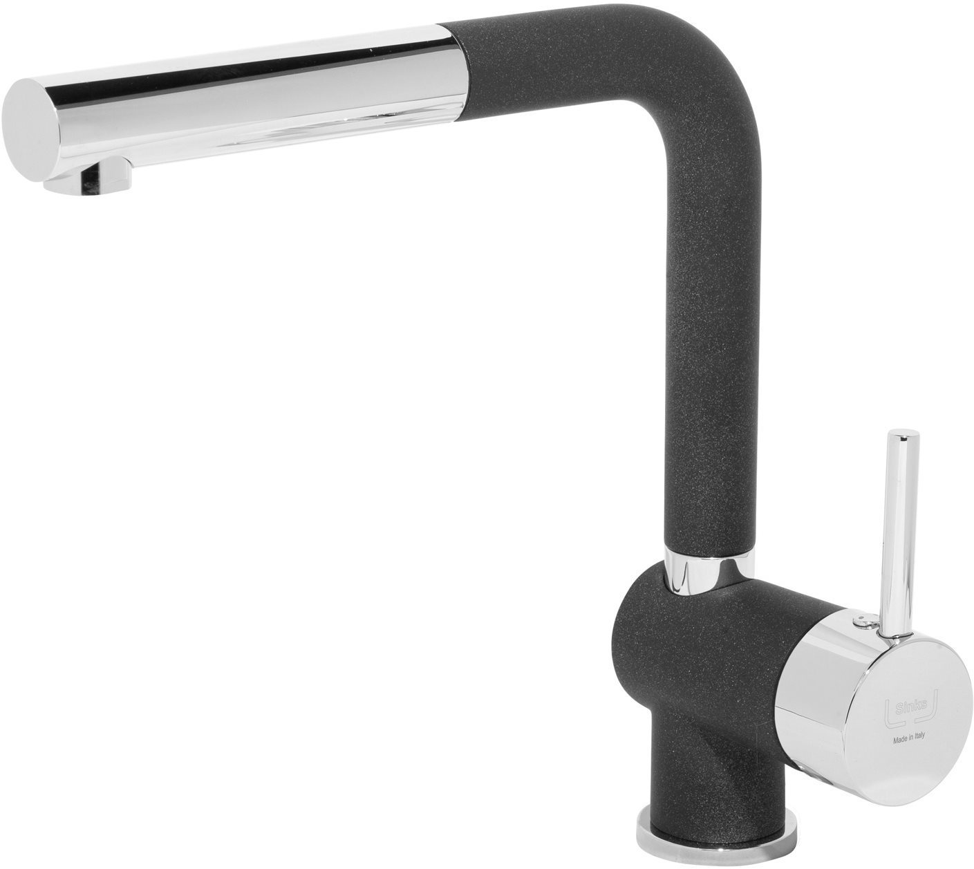 Vodovodná batéria – drezová, stojančeková, pákové ovládanie, materiál granit, klasický štýl, s perlátorom, s keramickou kartušou, so sprchou, s vyťahovacou koncovkou a otočná o 200°, čierna farba Drezová batéria Sinks MIX 3 P je vybavená koncovkou s perlátorom a navyše je otočná o 200 °. Bezpochyby zaujme aj päťročnou zárukou.Granitová drezová batéria Sinks Mix 3 P vo vyhotovení Metalblack