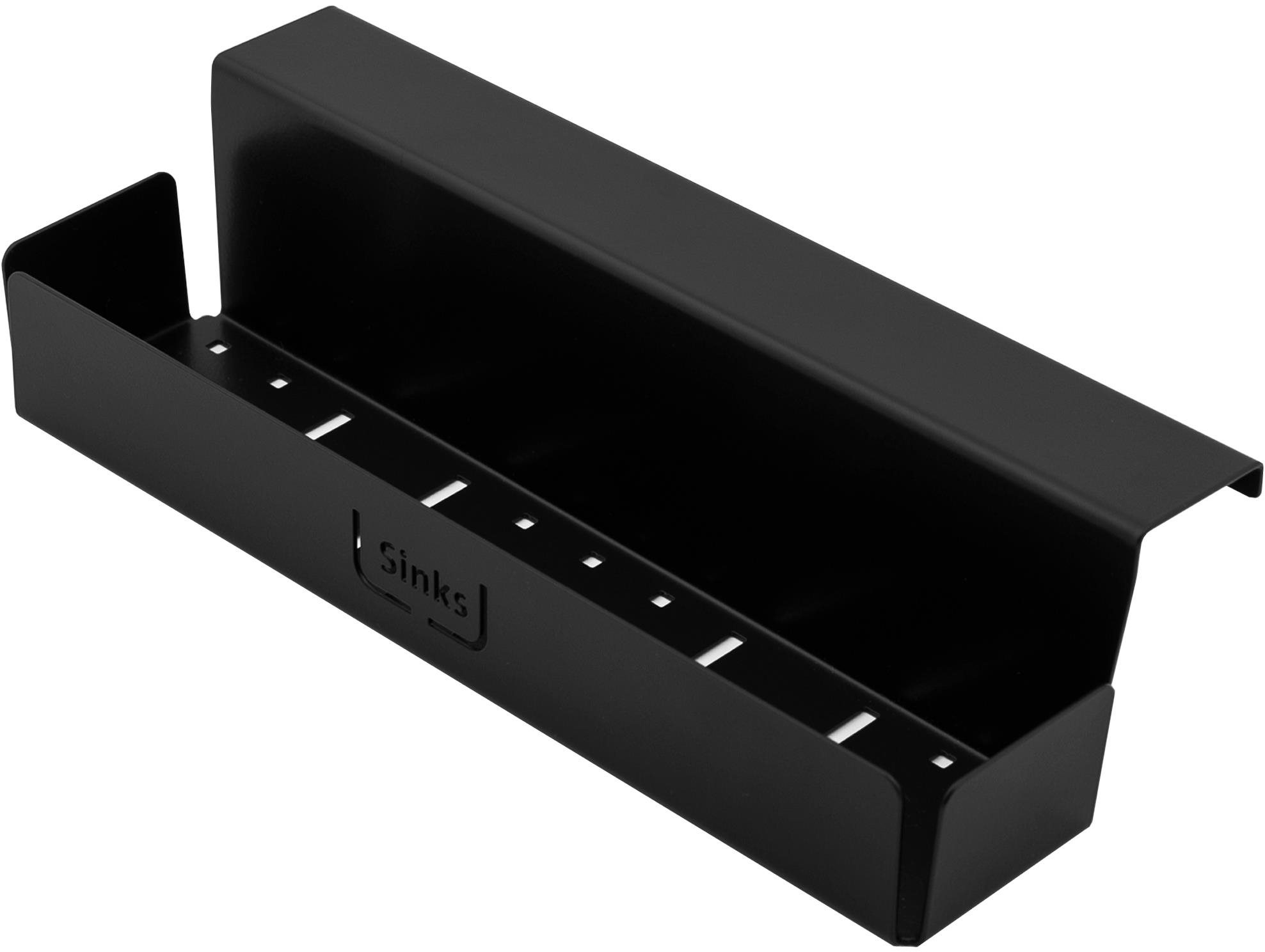 Závesný držiak Príslušenstvo ku granitovým drezom Linea a Viva Čierna polička z lakovanej nehrdzavejúcej ocele. Rozmery: 265 × 57 (103) × 65 mm