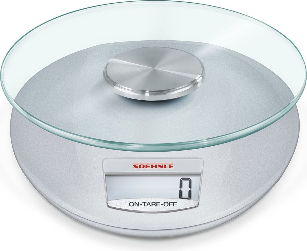 Kuchynská váha – digitálna, s hladkou plochou, klasický dizajn, váži do 5 kg s presnosťou na 1 g, jednotka gram, automatické vypnutie, s funkciou TARE, dotykové ovládanie, materiál sklo a plast, strieborná farba, rozmery 7 × 19,4 × 21,6 cm (V׊×H), na AAA batérie Ak si potrebujete zaobstarať praktického pomocníka do kuchyne, ktorý vám zaistí skvelé výsledky pri príprave pokrmov, vhodnou voľbou bude kuchynská váha Soehnle. Váha disponuje hladkou plochou pre pri