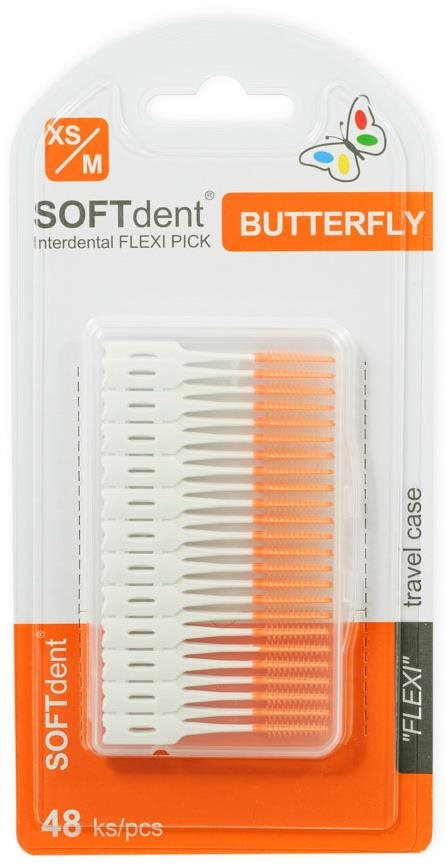 Medzizubná kefka – 48 ks v balení Medzizubná kefka SOFTdent je ideálnym riešením na odstraňovanie zvyškov jedla z medzier medzi zubami. Dentálne špáradlá s kefkou z flexibilného materiálu SOFdent® Butterfly FLEXI PICK sú vhodné na čis