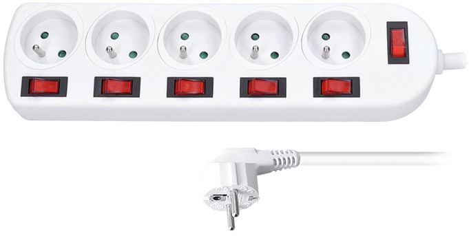 Predlžovací kábel – dĺžka 2 m, male konektor 1× vidlica typu E, female konektor 5× zásuvka typu E, LED indikácia až 10 A, CYSY Predlžovací prívod Solight PP143 urobí z jednej elektrickej zásuvky ďalších 5, ktoré budú 2 metre od pôvodnej. Rieši preto nedostatočný počet dostupných zásuviek aj dĺžku pôvodného kábla spotrebiča. M