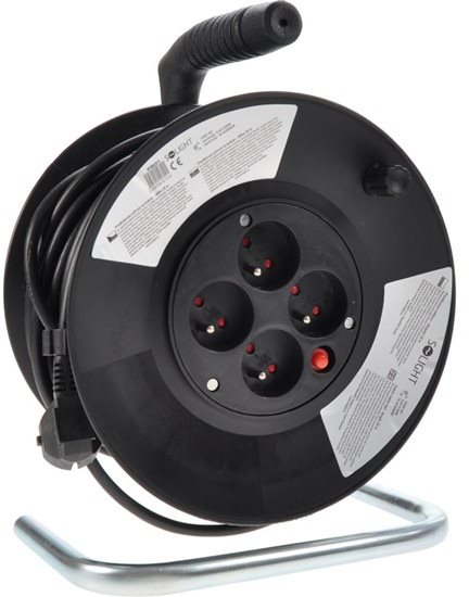 Solight Predlžovací prívod na bubne, 4 zásuvky, čierny, 25 m