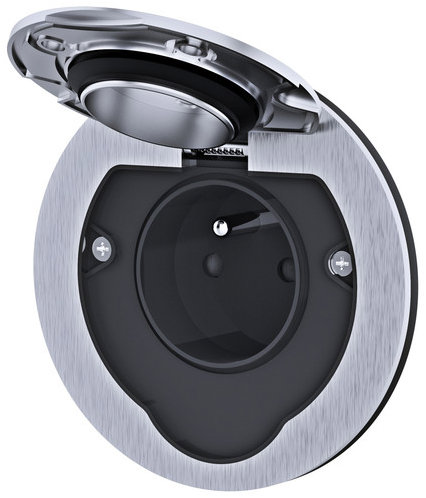Solight vstavaná podlahová zásuvka, IP55, okrúhle viečko, nehrdzavejúca oceľ