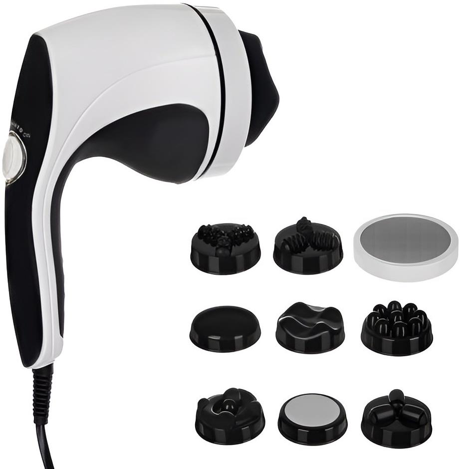 Masážny prístroj – na brucho, zadok a stehná, aj na formovanie postavy, tlmenie bolesti, terapia svetlom, 1 program, vymeniteľné nadstavce, príkon 28 W,, sieťové napájanie, dĺžka kábla 180 cm, čierna a biela farba, hmotnosť 0,8 kg, rozmery 16 × 9 × 25 cm (V׊×D), nevhodný pre tehotné ženy a osoby s implantovanými liečebnými prístrojmi Tento prístroj na chudnutie 9 v 1 má mnoho funkcií. Zariadenie vám pomôže schudnúť a tiež odstrániť nahromadený tuk. Odstraňuje tiež silnú a chronickú bolesť a taktiež vám umožňuje relaxovať a odpočív