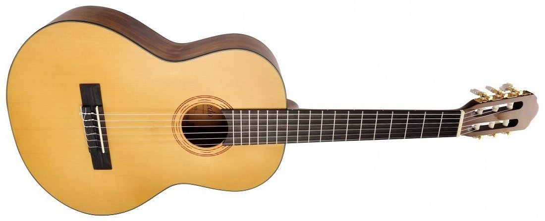 Klasická gitara – pre deti, veľkosť 3/4, 6 strún, 18 pražcov, menzúra 580 mm, šírka nultého pražca 48 mm, polomasívny korpus, matná povrchová úprava, predná doska smrek, zadná doska lipa, luby lipa, krk okoumé Má…