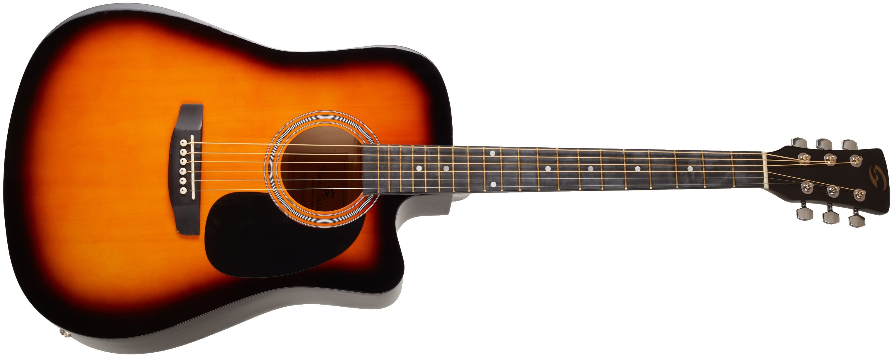 Elektroakustická gitara – 6 strún, telo Dreadnought, 20 pražcov, vrstvený korpus, pololesklá povrchová úprava, predná doska lipa, zadná doska lipa, luby lipa, hmatník javor, so snímačom Urobil by vám radosť úplne nový hudobný nástroj? Elektroakustická gitara SOUNDSATION by mohla byť tá pravá voľba. Elektroakustická gitara SOUNDSATION sa chváli 20 podvalmi, vďaka ktorým sa nástroj ľah