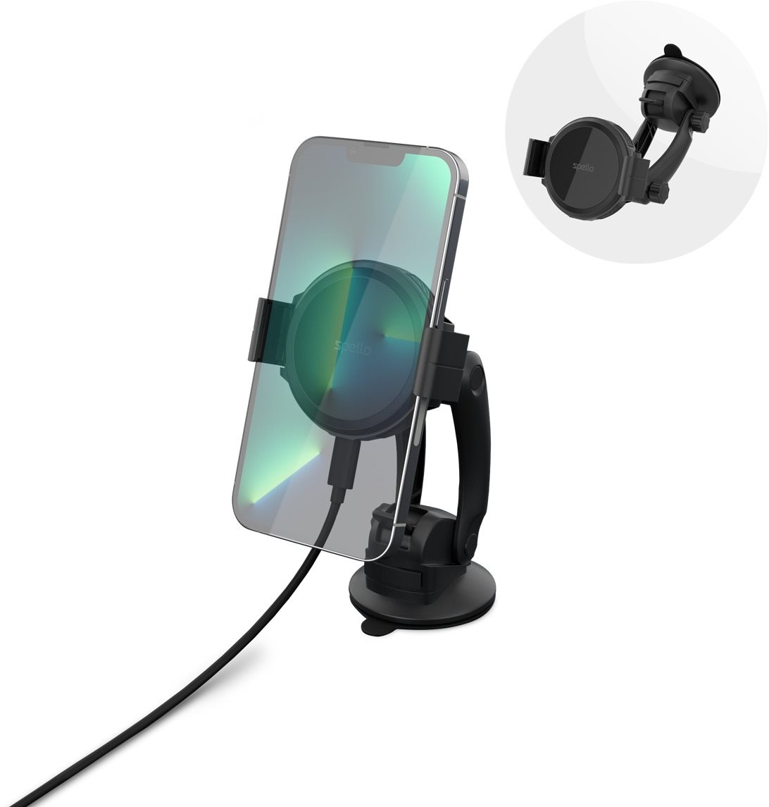 Držiak na mobil – do auta, Qi nabíjanie, mechanický, lepiaci, na palubnú dosku a na sklo, polohovací, integrovaný dobíjací kábel súčasťou, pre zariadenie so šírkou 11,9 – 17 cm, čierna farba, hmotnosť 100 g Nie je vyplnený Alternatívny text k fotografii!Elegantná bezdrôtová nabíjačka do auta Spello by EpicoMajte váš smartfón neustále na očiach a doplňte mu energiu prostredníctvom bezdrôtového nabíjania Q