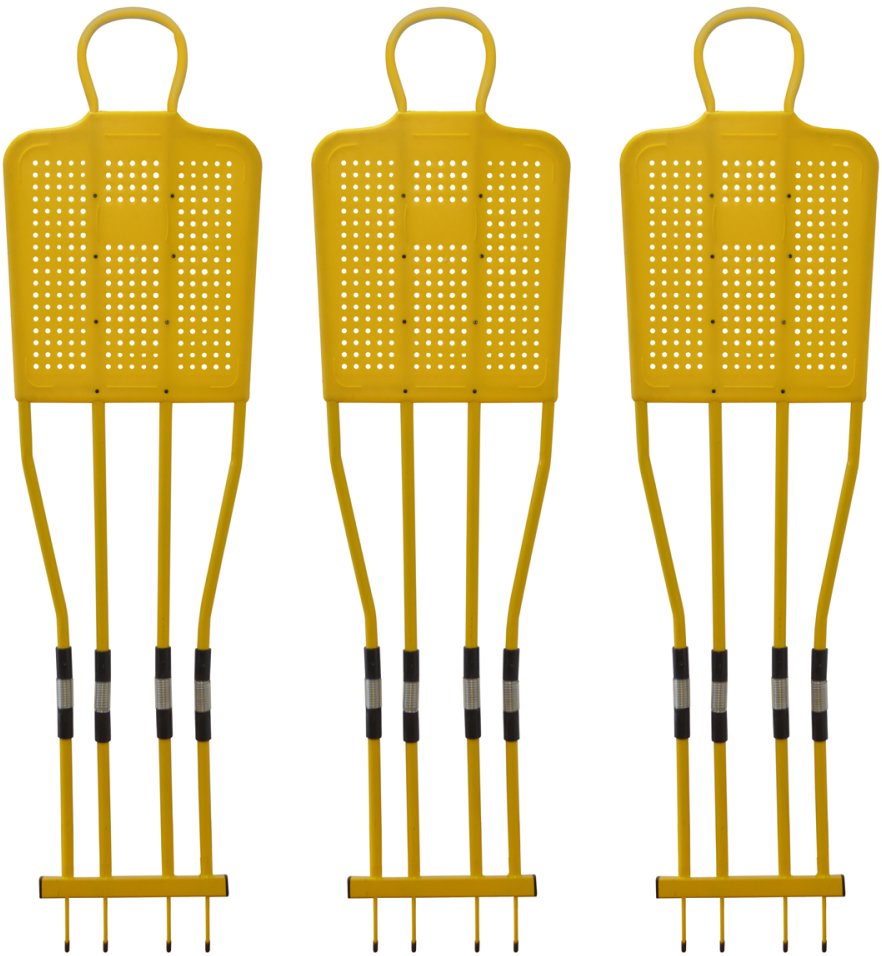 Tréningová pomôcka – výška 180 cm, šírka 50 cm, súprava 3 ks, odolné, flexibilné Profesionálne tréningové figuríny SPORTI FRANCE so skladacím mechanizmom – sada 3 ks. Robustné figuríny s kovovou konštrukciou a pružinami, ktoré umožňujú ich bezpečné sklopenie bez poškodenia pri nár