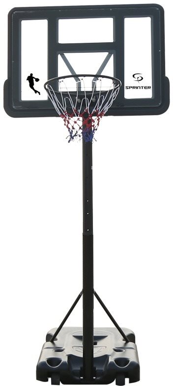Basketbalový kôš – so stojanom, samostatne stojací, vhodný do exteriéru, na lopty veľkosti 7, priemer obruče 45 cm, nastaviteľná výška koša od 230 do 300,5 cm, rozmery dosky 75 × 110 cm (V׊), hmotnosť 25 kg, prenosný, materiál dosky PVC, materiál konštrukcie oceľ Basketbalový kôš Sprinter MAX 44″ je robustnou a stabilnou voľbou pre náročnejších hráčov, ktorí hľadajú plnohodnotné tréningové podmienky. Vďaka nastaviteľnému stojanu s maximálnou výškou až 3,05 met
