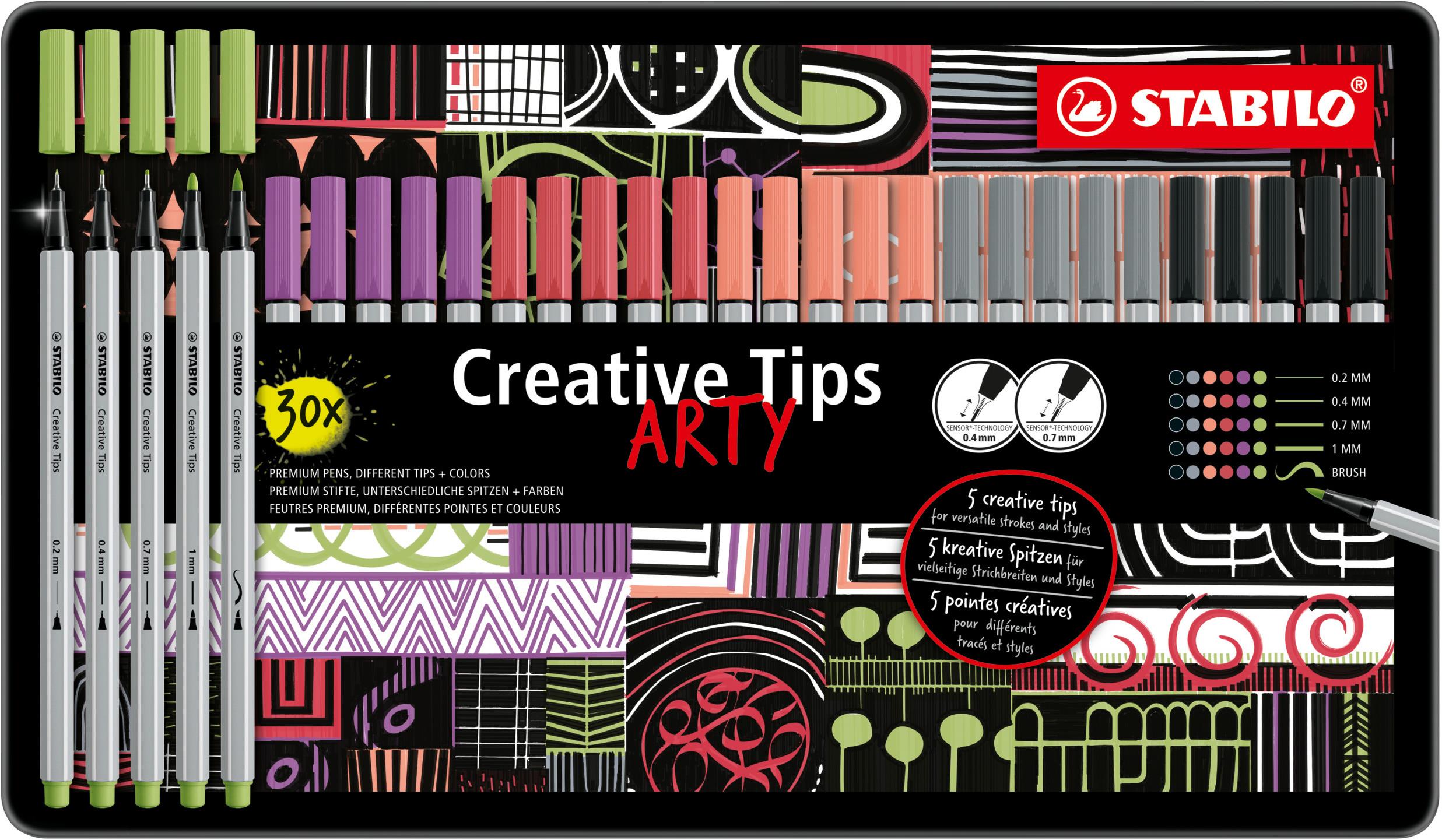 STABILO Creative Tips ARTY – súprava 30 ks v plechu (6 farieb Pastel)