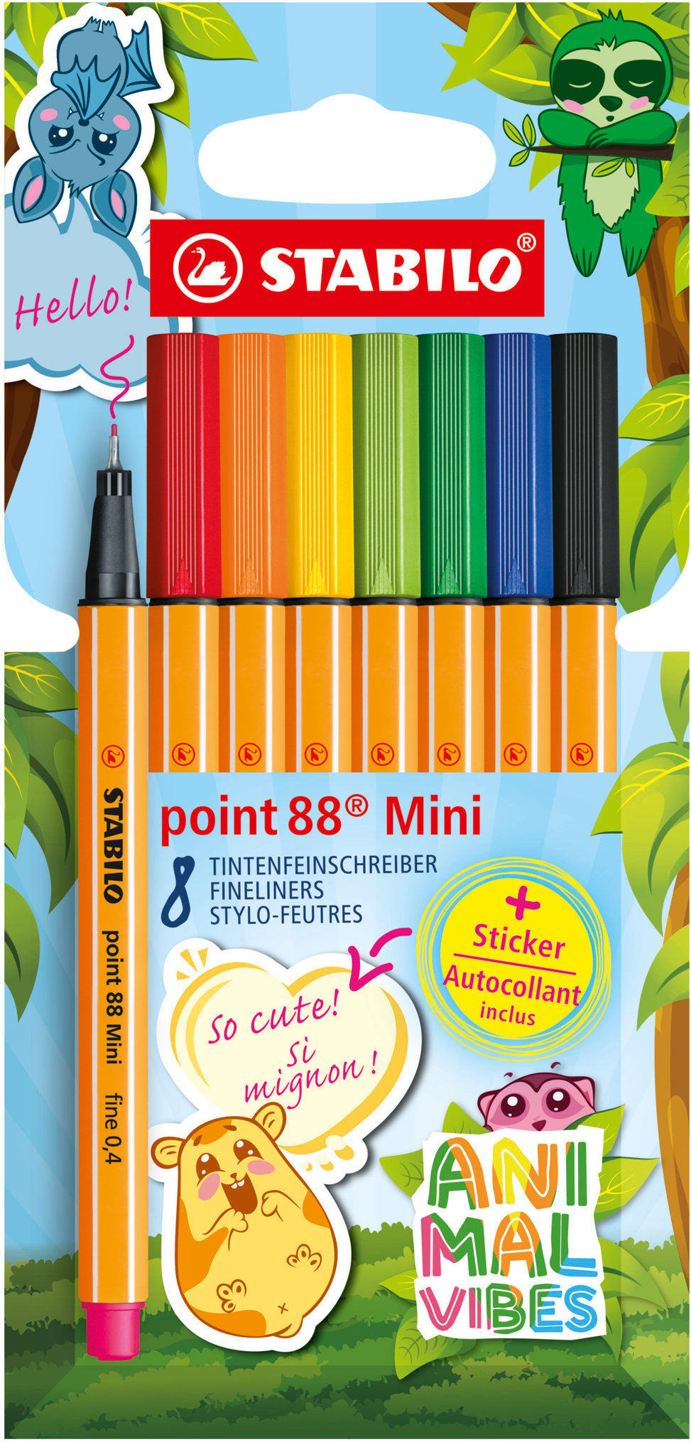 STABILO point 88 Mini Animal Vibes so samolepkami – sada 8 ks