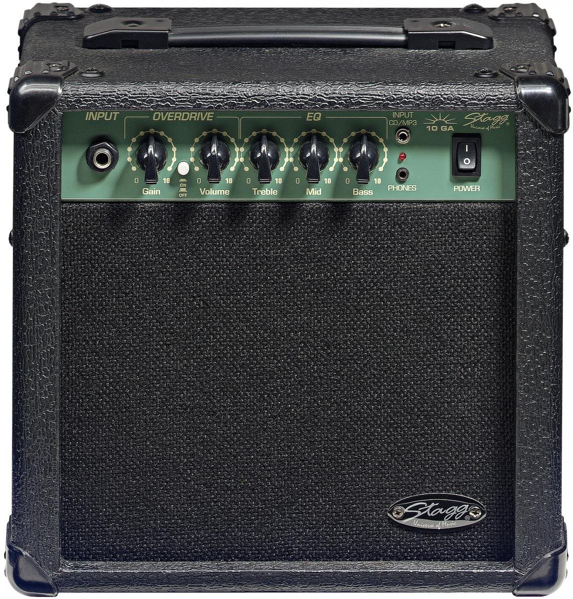 Kombo – pre elektrickú gitaru, 10W, 6.5″ reproduktor, 6.35mm linkový vstup, 3.5mm vstup pre CD/MP3, slúchadlový výstup 3.5mm, ovládanie Gain a Volume, vypínateľný efekt overdrive, trojpásmový ekvalizér Hľadáte dokonalého spoločníka na domáce trénovanie, skúšanie s kamarátmi a vystupovanie v menších priestoroch? Potom zvoľte gitarové modelingové kombo Stagg. Toto tranzistorové kombo sa pýši vysokou s