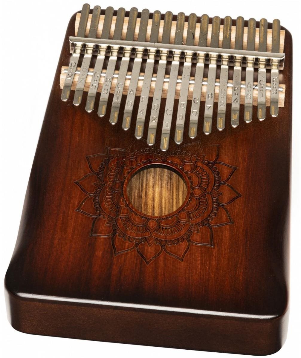 Perkusie – elektroakustická kalimba Stagg KALI-PRO21. E-ZE predstavuje profesionálnu elektroakustickú kalimbu. Jej telo je vyrobené z vysokokvalitného exotického dreva Zebra wood, zatiaľ čo jazýčky z kovu. Sedemnásť lamiel je naladených d