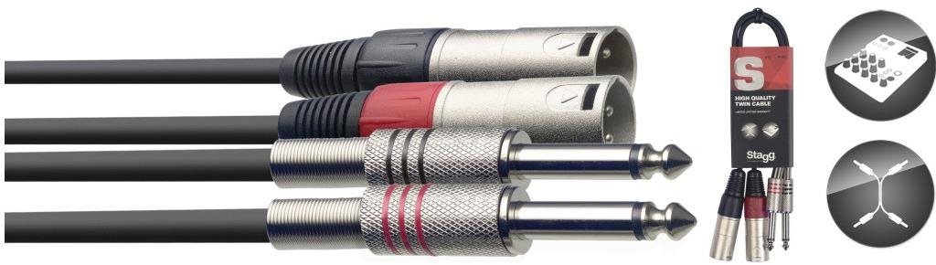 Audio kábel 3 m – prepojovací, male konektory: 2× jack 6,35 mm (TS) + 2× XLR3, kovové telo, rovné zakončenie Hlavné prednosti audio kábla Stagg STC3PXM Audio kábel Stagg zaobstará kvalitný zvuk Tento prepojovací audio kábel zaistí veľmi kvalitný prenos zvukového signálu medzi vašimi zariadeniami 2× Jack 6,35