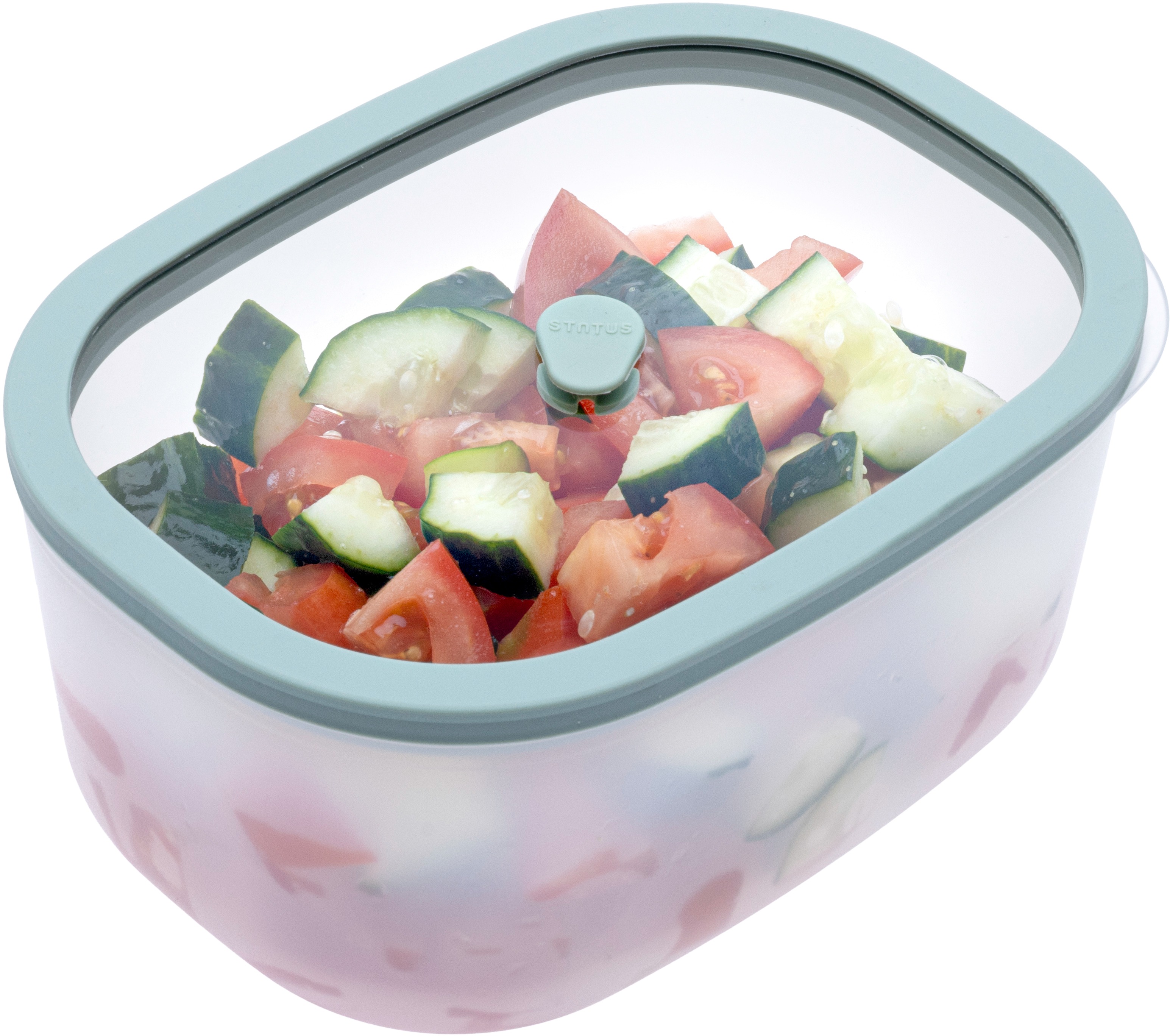 Dóza – plastová, obdĺžniková, tesniaca, odolná proti poškriabaniu, vákuovacia, stohovateľná a bez BPA, nasadzovacie veko, materiál veka sklo, vhodná do mikrovlnnej rúry, umývačky a mrazničky, objem 1,4 l, rozmery 9,5 × 19 × 14 cm (V׊×H), v balení veko Zásadné prednosti dózy STATUS 177157 Fresko Vákuová dóza 1,4 l mint Vákuová dóza STATUS prispieva k optimálnemu skladovaniu potravín Prispeje k lepšej organizácii nielen v kuchyni Praktická obdĺžnikov