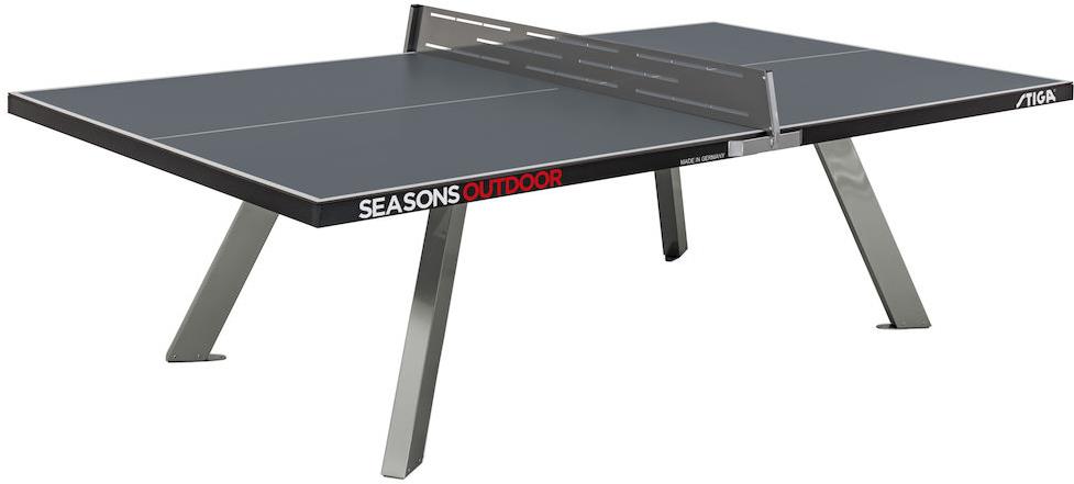 Pingpongový stôl vonkajší, rozmery 274 × 152,5 × 76 cm, hrúbka dosky 10 mm, hmotnosť 137 kg Stôl STIGA Seasons Outdoor je špeciálne navrhnutý na vonkajšie použitie, môžete ho využívať ale aj v interiéri. Disponuje 10 mm hrubou doskou z melamínu s bezpečnostným lemom, ktorá odoláva teplu, daž