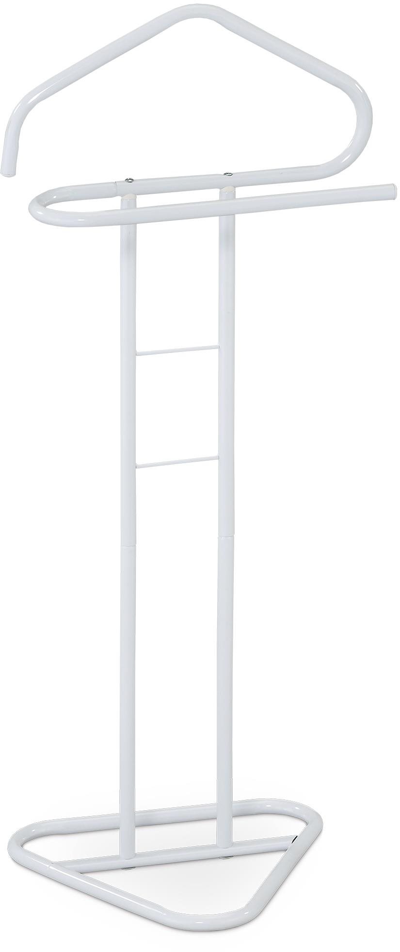 Stojan na oblečenie – materiál: kov, rozmer: 108 × 43 × 37 cm (V׊×H), Němý sluha PAVO v bílé barvě je praktický stojan na oblečení v minimalistickém provedení. Kovová konstrukce z trubek o průměru 19 mm je opatřena matným bílým práškovým lakem, který zajišťuje odolnost