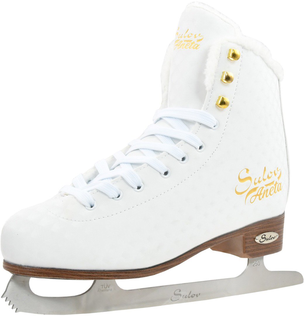 Korčule na ľad Sulov – dámske, určenie podľa výkonnosti: amatérske a výkonnostné, na krasokorčuľovanie, systém zapínania šnúrky, anatomicky tvarovaná topánka a tepelná izolácia nohy, materiál rámu plast, materiál skeletu PVC a materiál vnútornej vrstvy syntetická koža, nehrdzavejúca oceľ noža, veľkosť EU 42, biela farba topánky Dámske ľadové korčule SULOV® ANETA sú určené na rekreačné aj výkonnostné krasokorčuľovanie žien a dospievajúcich dievčat. Základ korčule tvorí skelet z PVC v kombinácii so syntetickou kožou, čo zaisťu
