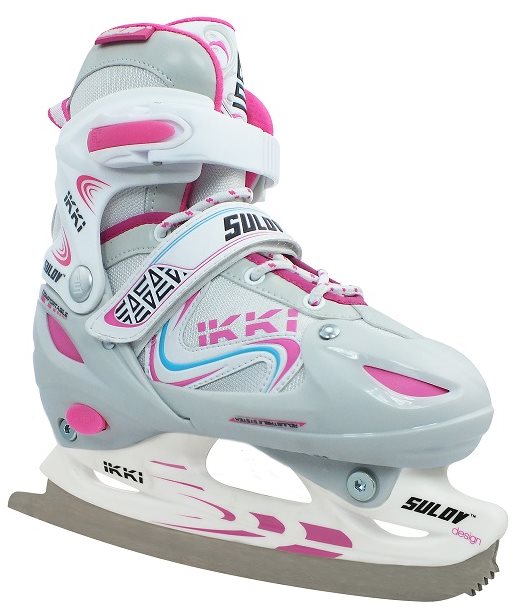 Detské korčule na ľad vhodné pre rekreačných korčuliarov, veľkosť 35, 36, 37 a 38 vhodné pre rekreačných korčuliarov Dievčenské ľadové korčule Sulov Ikki Girl v modro-červeno-bielom vyhotovení sú vhodné na rekreačné využitie. Zárukou pohodlného nosenia je rýchloschnúca priedušná výstelka a komfortná vložka, ktorá sa