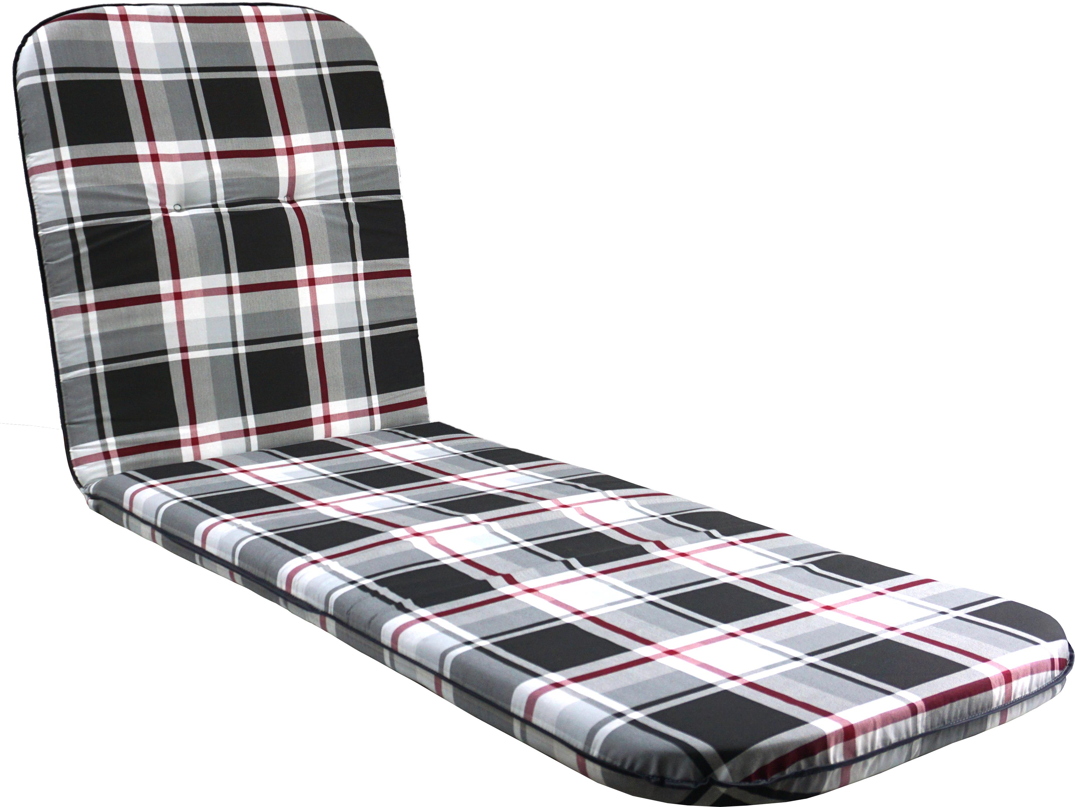 Poduška – na záhradný nábytok, na ležadlo, uchytenie elastickým popruhom, materiál poťahu bavlna, materiál výplne polyuretán, rozmery 192 × 60 × 5 cm (D × Š × V), kockovaný vzor, červená a sivá farba Poduška…