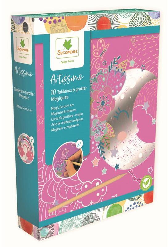 Vyškrabovacie obrázky – karty, vhodné pre deti od 4 rokov, téma vesmír, 10 obrázkov, škriabacie pero a šablóny súčasťou balenia, rozmery 22 × 16 cm (V׊) Kľúčové vlastnosti škrabacích obrázkov Sycomore Artissimo, magický sen. Život ako…