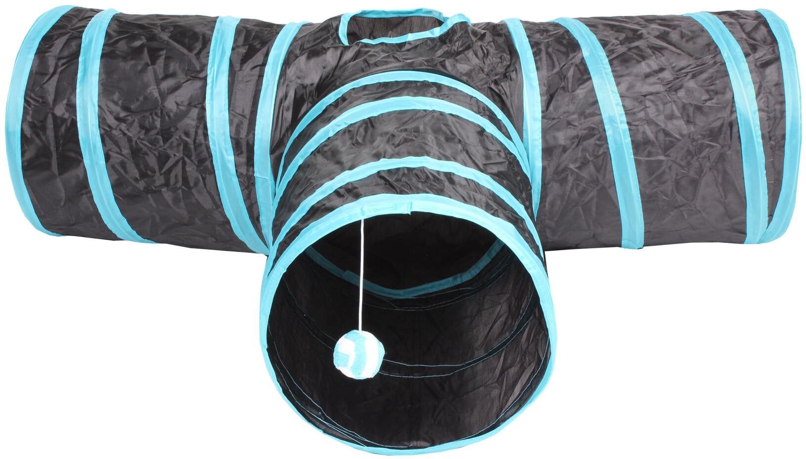 Preliezací tunel – Agility tunel T Three-way je skvelým nástrojom na rozvoj pohybových aktivít a interaktívnej zábavy vašich štvornohých kamarátov. Tunel v tvare písmena T má každý z troch východov dlhý 35 cm. Na jednom