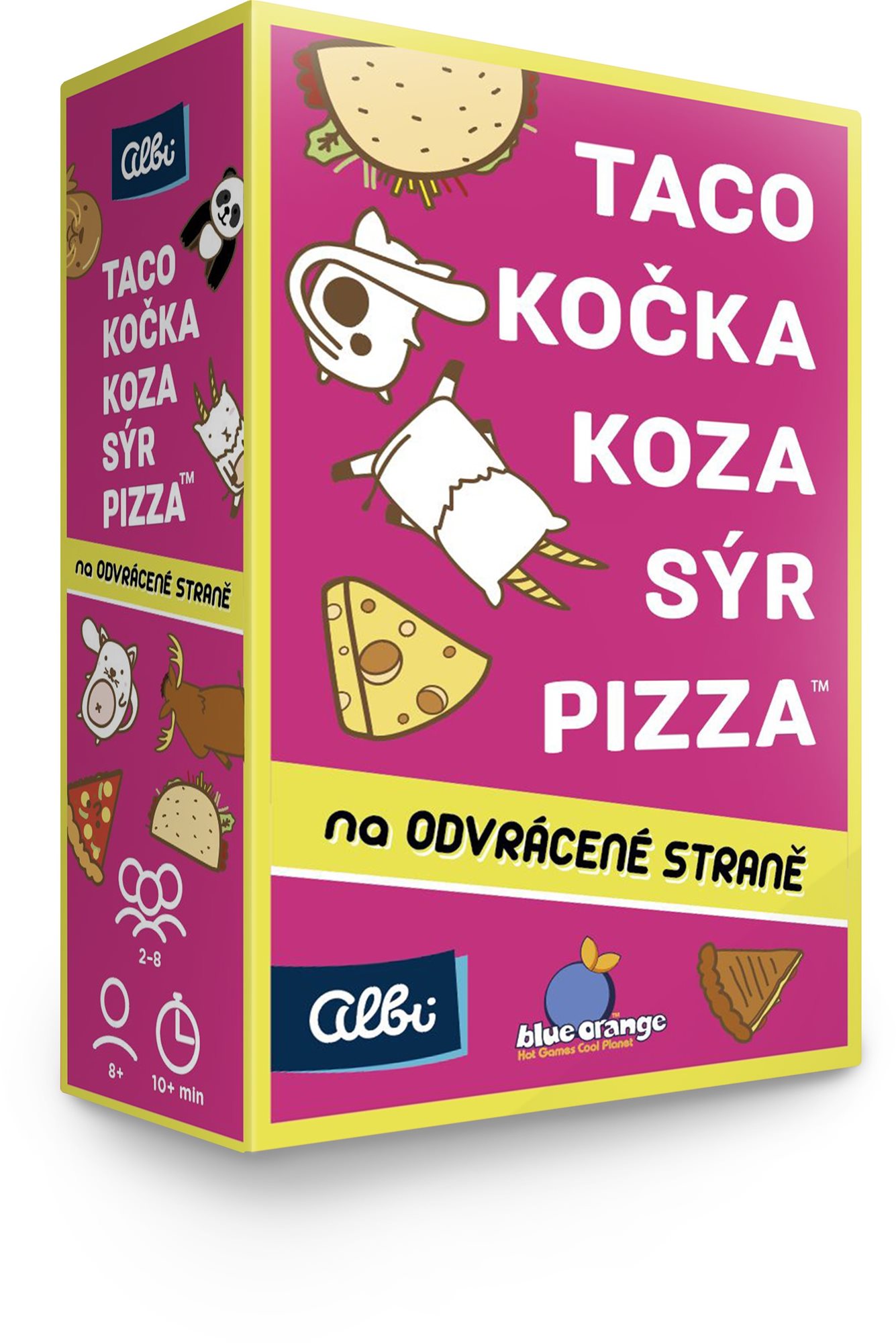 Kartová hra – postrehová, pre 2 až 8 hráčov, ľahká obťažnosť, dĺžka hry 10 min, v slovenskom jazyku, vhodné od 8 rokov Pripravte sa na zbesilé herné tempo a ukážte, kto má najlepší postrehKartová hra Taco, mačka, koza, syr, pizza na odvrátenej strane je tak trochu bláznivá postrehová hra, v ktorej sa neustále opakuje