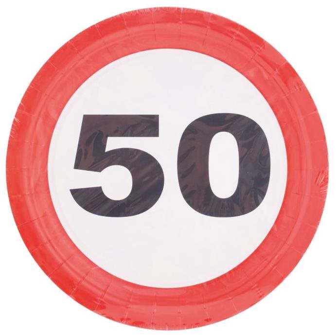 Súprava tanierov – taniere, biela, čierna a červená farba, okrúhly tvar, narodeninový motív, 8 kusov v súprave Hlavné prednosti sady tanierov Taniere dopravná značka 50 Súprava tanierov FUNNYFASHN – party sa bude perfektne hodiť na záhradnú párty Na ich zhotovenie bol použitý kvalitný materiál, akým je papier