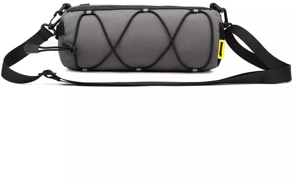 Taška na bicykel – na riadidlá, objem 2 l, vodoodolná, vhodná na bikepacking, vo výbave suché zipsy, horné vrecko, vrecko na mobilný telefón, popruh cez rameno, rozmery 10 × 24,5 × 10 cm (V׊×H), hmotnosť 0,16 kg, sivá farba Cyklistická taška Rhinowalk RK9103 je praktický a odolný doplnok pri jazde na bicykli, elektrokolobežke alebo motocykli. Je vyrobená z vodoodolného polyesteru 900D, ktorý zaisťuje spoľahlivú ochranu u