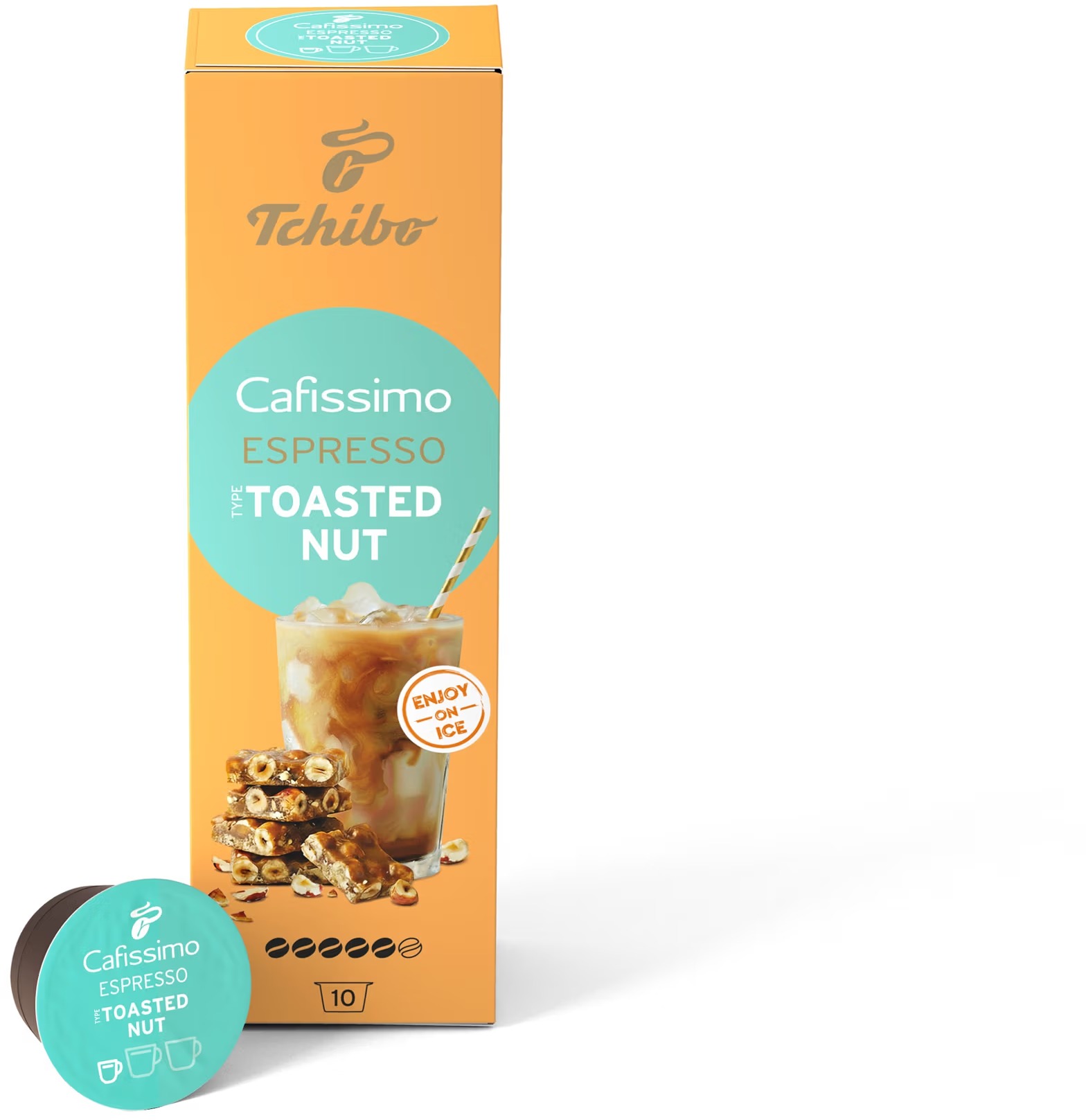 Kávové kapsuly na Tchibo Cafissimo – na káva bez sušeného mlieka, zmes kávových odrôd, orieškové tóny, 10 kapsúl v balení Kávové kapsuly Tchibo Cafissimo Espresso Toasted Nut10 kapsúlKávové kapsuly Tchibo Cafissimo Espresso Toasted NutEspresso s výraznou príchuťou pražených lieskových orechov a pečiva. Užite si chvíle pl
