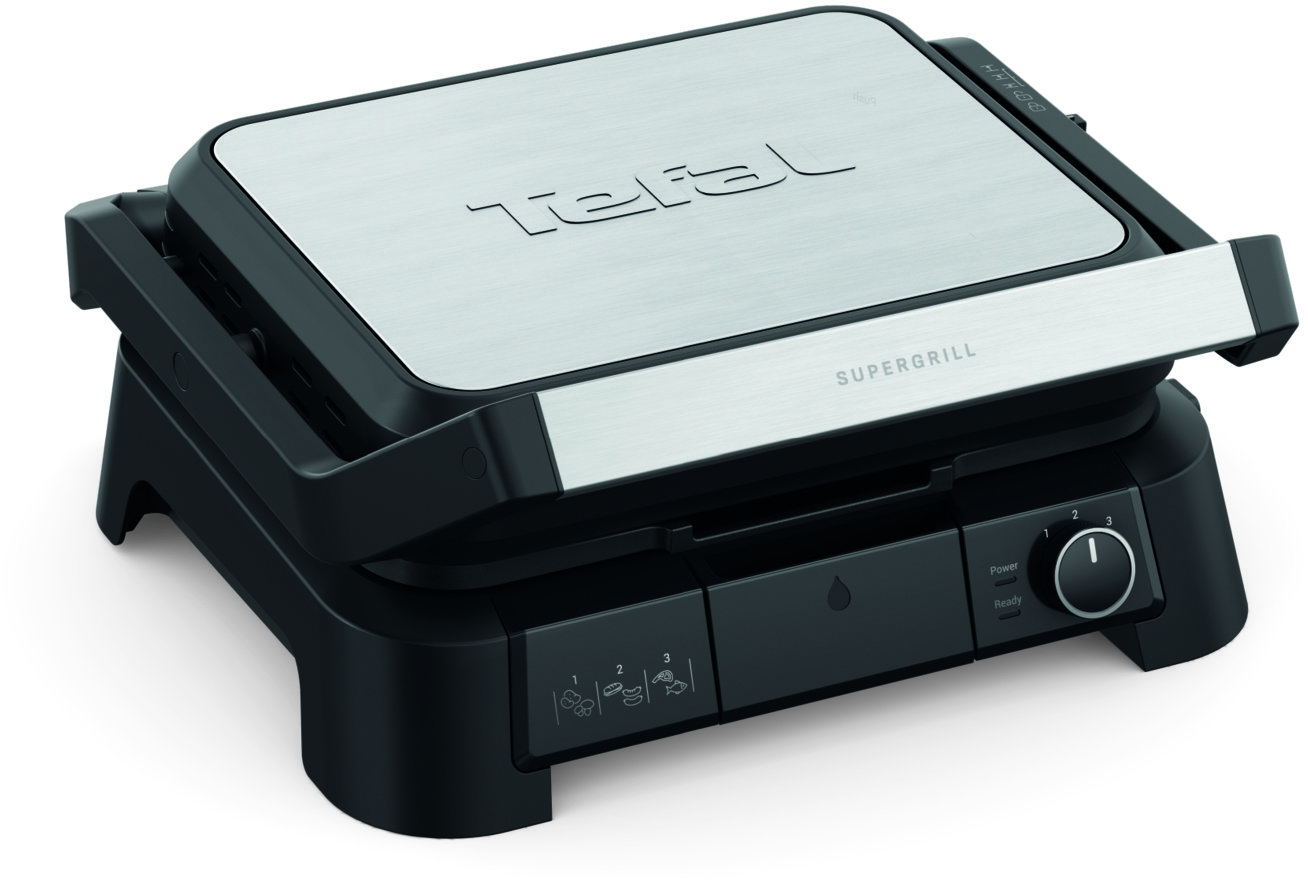 Kontaktný gril – 3 v 1 (grilovanie, opekanie a pečenie), príkon 2 000 W, veľkosť platne 30 × 20 cm, nastaviteľný termostat s 3 teplotami, odnímateľné nepriľnavé platne vhodné do umývačky riadu, rýchle nahriatie, priestorovo úsporný dizajn vďaka vertikálnemu skladovaniu, odnímateľná miska na šťavu, svetelný indikátor pripravenosti na varenie, čierna a antikorová farba, 15-ročná záruka na opravu Kontaktný gril Tefal GC510DE0 SuperGrill 3 v 1Kontaktný gril Tefal GC510DE0 SuperGrill 3 v 1 prináša univerzálne riešenie na prípravu pokrmov doma aj pri grilovaní s rodi