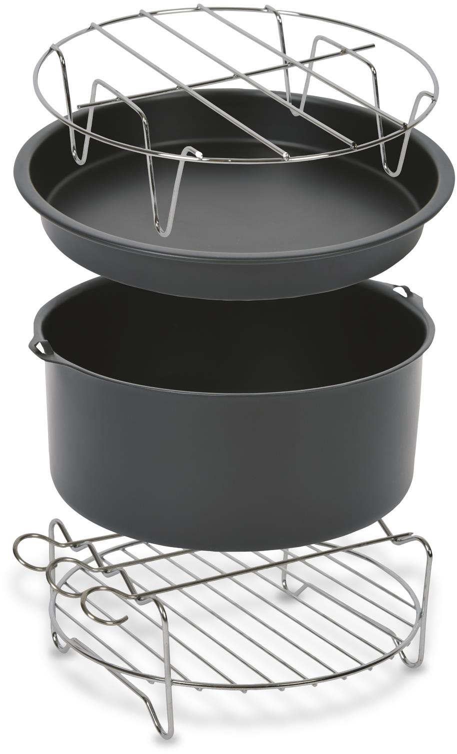 Príslušenstvo k fritézam Tefal Easy Fry Classique, sada obsahuje tortovú formu, formu na pizzu, ihlicový gril a kovový podstavec, priemer 17cm, je možné umývať v umývačke riadu, kompatibilný s teplovzdušnými fritézami Tefal Easy Fry EY201815,…