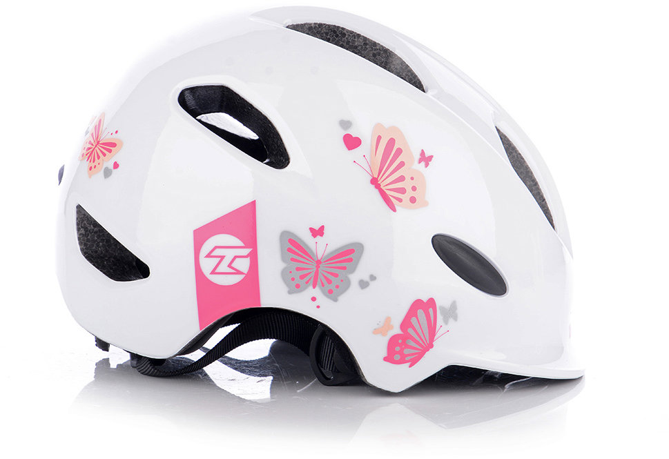 Prilba na bicykel – pre deti, kokoska, veľkosť M na obvod hlavy od 52 do 56 cm, remienok s prackou na zapínanie, 10 ventilačných otvorov, materiál konštrukcie EPS, odnímateľná X-fit vypchávka, materiál vypchávky molitan, biela…