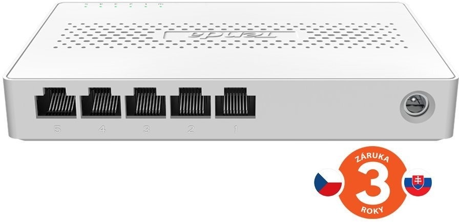 Switch domáci – desktop, unmanaged, 5× RJ-45, 5× 10/100/1000. Base-T, Auto-MDI/MDIX, auto-negotiation a plug and play, Qo. S (Quality of Service), IPv6 Ready, prepínacia kapacita 200 Gb/s, 5 portov s rýchlosťou 2,5 Gbit, 5 portov s rýchlosťou…