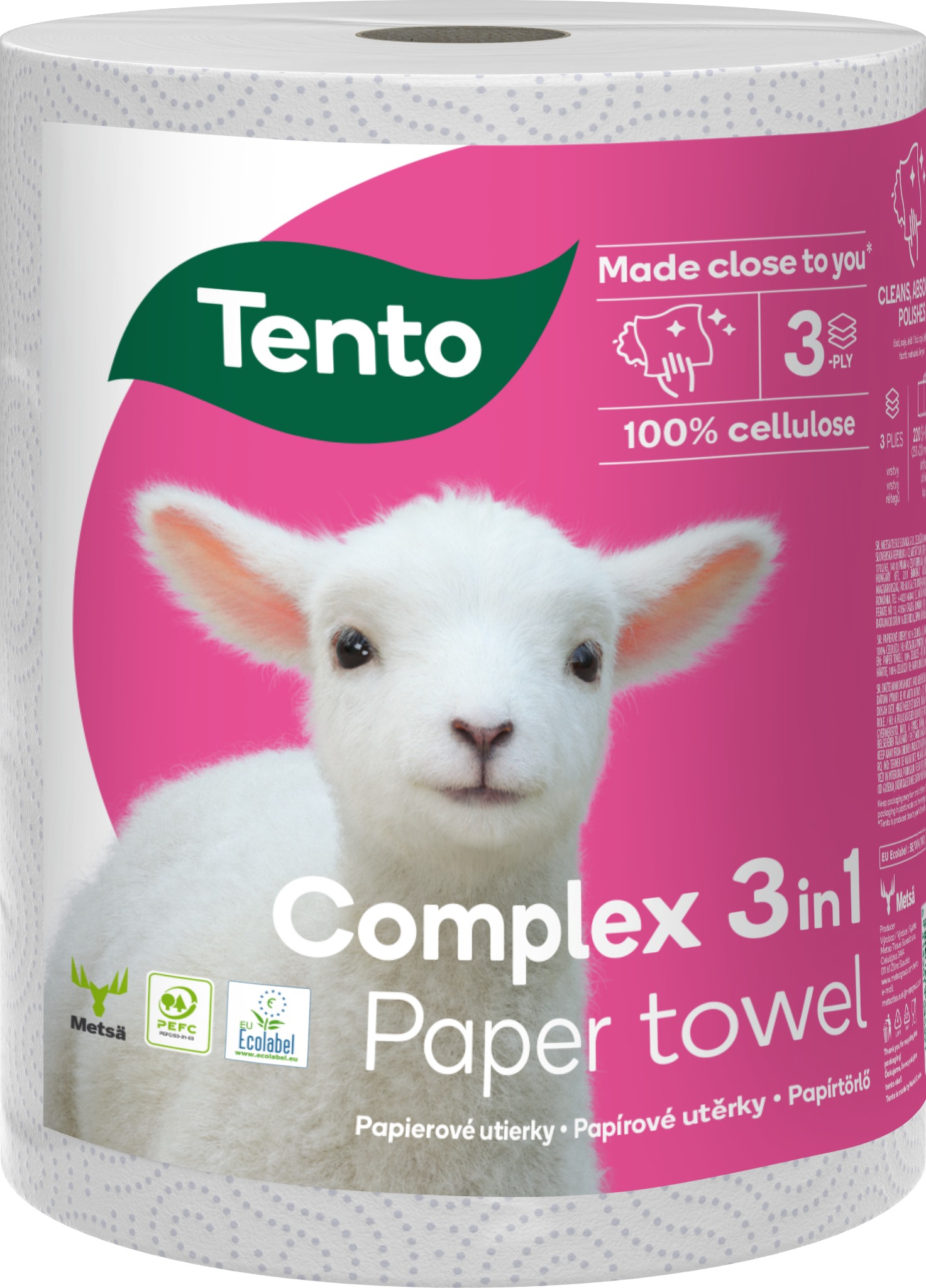 Papierové utierky – trojvrstvové, dĺžka rolky 55 m, 220 útržkov Kuchynské utierky TENTO Complex 3in1 predstavujú nepostrádateľný doplnok do každej domácnosti. Vynikajú inovatívnou kombináciou 3 vrstiev, ktoré tvorí vrstva profesionálnej utierky na čistenie a