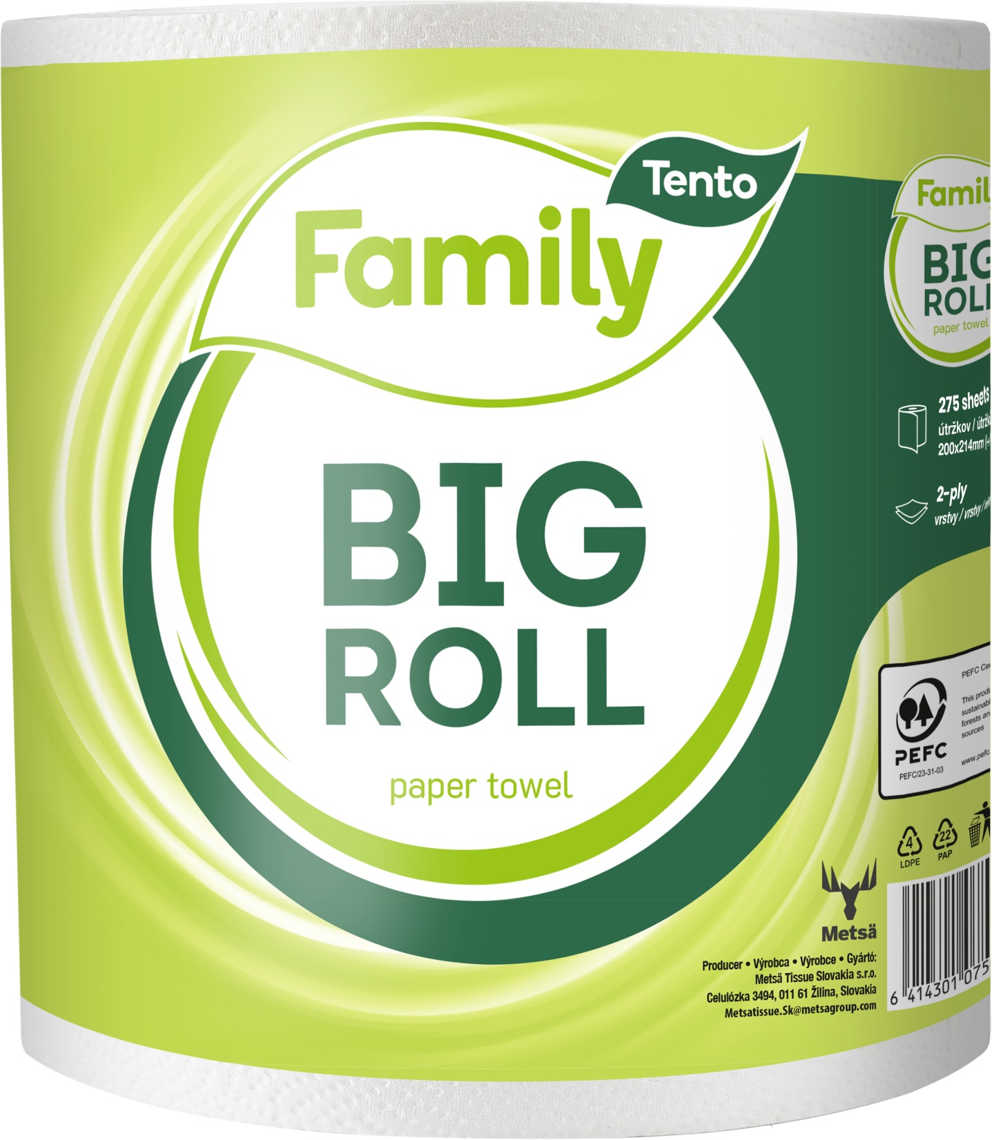 Papierové utierky – dvojvrstvové, dĺžka rolky 60 m, 275 útržkov Kľúčové vlastnosti papierových utierok TENTO Family Big Papierové utierky TENTO sú ideálnym riešením na každodennú hygienu, upratovanie a čistenie rôznych povrchov Dvojvrstvové vyhotovenie zaručuje vy