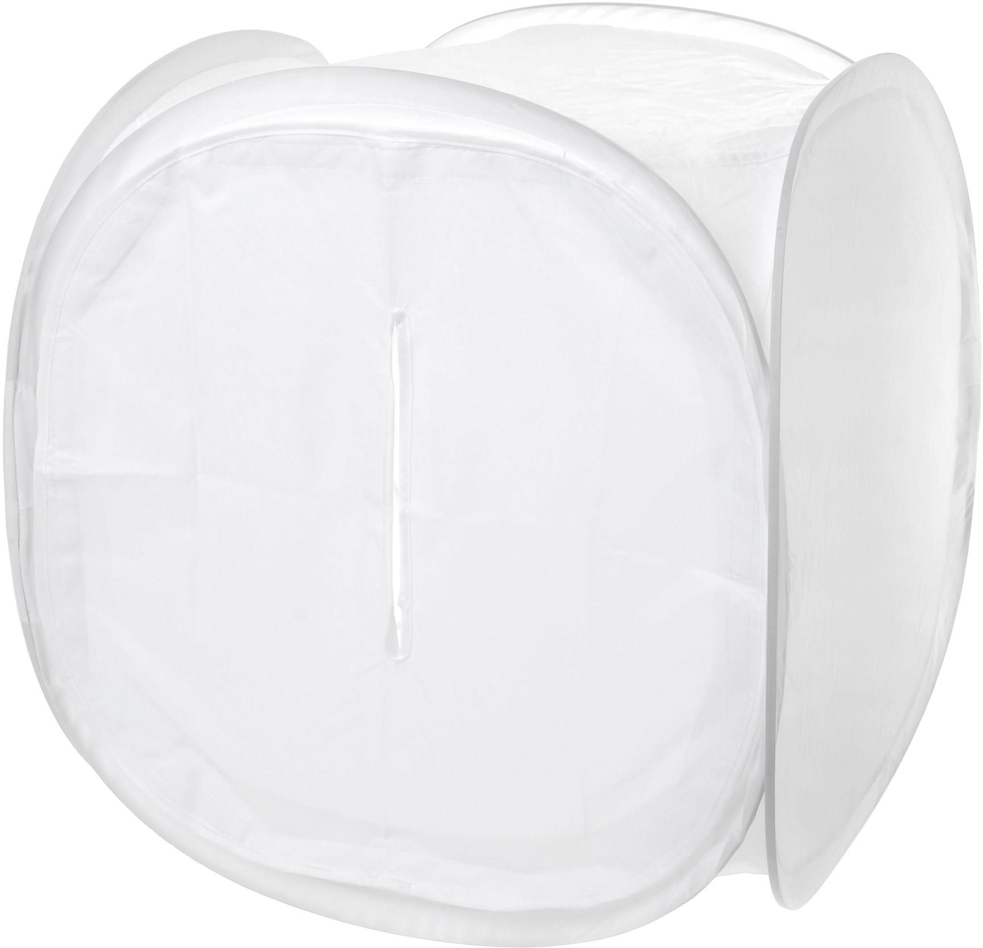 Fotobox – červené, modré a čierne pozadie, vymeniteľné pozadie, pozadie v balení, rozmery 50 × 50 × 50 cm (V׊×H) Difúzny stan Terronic nezaberie skoro žiadne miesto a s jeho pomocou vytvoríte produktové fotografie profesionálnej kvality. Zaisťuje rovnomerné osvetlenie priestoru a mäkšie tiene. Je dodávaný vrátan