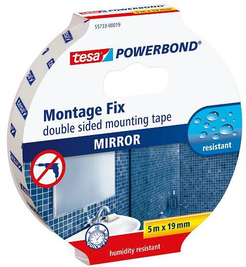 tesa Powerbond – Montážna obojstranná penová páska na zrkadlá, biela, 5 m: 19 mm