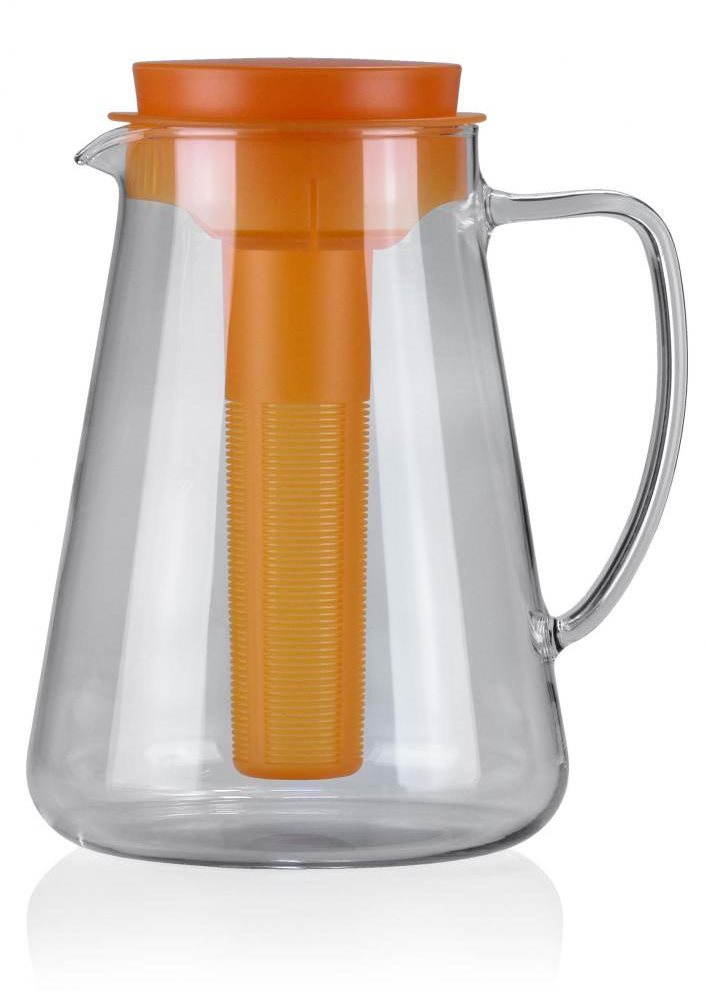 Džbán – na čaj, sklenený, materiál uzáveru plast, objem 2500 ml, vhodný do umývačky, so sitkom na lúhovanie, vrátane vložky na ľad, rozmery 22 × 16 × 16 cm (V׊×D), oranžová farba Multifunkčný sklenený džbán,…