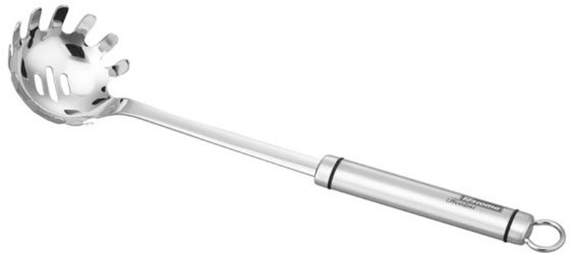 Naberačka – materiál: oceľ, vhodná do umývačky a očko na zavesenie, dĺžka 32 cm Kľúčové vlastnosti naberačky TESCOMA Naberačka na špagety PRESIDENT Naberačka Tescoma bola zhotovená z nehrdzavejúcej ocele, vďaka tomu je pevná a odolná proti korózii Je vhodná do umývačky, čo uľahču