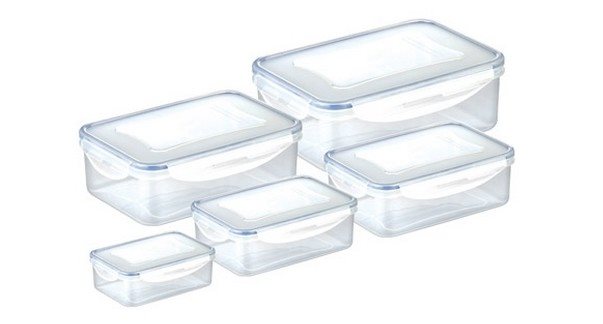 Dózy na potraviny – materiál dózy plast, obdĺžniková, tesniaca, veko s klipmi, materiál veka plast, vhodná do mikrovlnnej rúry, umývačky, mrazničky a chladničky, 5 dóz Súprava dóz v piatich veľkostiach z kolekcie FRESHBOX značky TESCOMA…